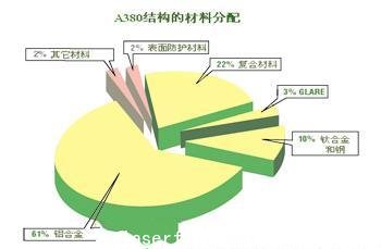 從(cong) 空客A380選材的分布來看(圖1),鋁合金占的比重最大,達機體(ti) 結構重量的61%,因此要實現性能改進,必須開發創新的鋁合金材料和工藝技術,具體(ti) 是提高強度和損傷(shang) 容限,加強穩定性並提高抗腐蝕能力。空客A380使用了2099、2199、2196等鋁鋰合金。用於(yu) A380的地板梁,如橫梁、座椅滑軌、座艙以及應急艙地板結構、電子設備安裝架及角形物,可減重幾百公斤。俄羅斯下一代窄體(ti) 客機MS-21將采用複合材料機翼和尾翼,而機身將由先進合金如鋁鋰合金製成。