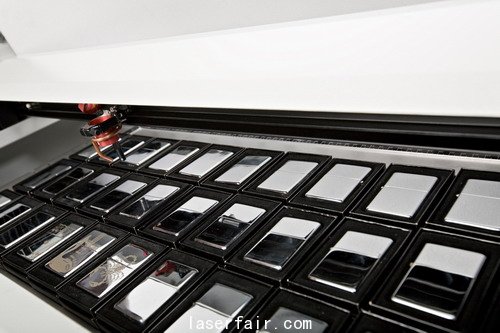 LS100 EX YAG包含的激光技術的可以用於(yu) 雕刻多種材料(ABS、鋁材、黑鋼、不鏽鋼或貴金屬等)。它的大台麵上可以放置諸如托盤之類的大件,操作者可以在托盤上放特定凹槽以將多個(ge) 部件固定,同時雕刻。