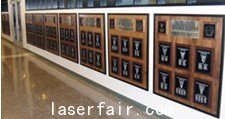 此打標項目由一個(ge) 100W的Synrad CO2激光器、一個(ge) FH Flyer打標頭和我們(men) 的新版WinMark ProV6.0激光打標軟件構成。為(wei) 了給8.5" x 11" 的陽極電鍍鋁打標,Flyer打標頭需配備370mm的透鏡以提供540 micron (0.021") 的焦距。每個(ge) 銘牌的打標文件由TrueType®字體(ti) 的文本和獨一無二的班徽構成,把這些信息都導入到WinMark Pro軟件中作為(wei) TIF格式的灰度圖像。文本和班徽由100W、速度為(wei) 3810厘米每秒(150 in/sec)、安裝有雙向光柵的激光器打出。為(wei) 了防止過掃描和圖像細節的損失,文本和TIF圖像的Filled Text Resolution應設置為(wei) 476、TextCurve Detail 應設置為(wei) 952。由於(yu) 各班的學員人數和班徽都不相同,打標時間也會(hui) 隨之變化,最具代表性的是每82平方英寸圖像的打標時間是115秒。如上如所示,鋁銘牌上的清晰標識是SynradCO2激光器打標的典型應用。