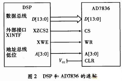 DSP與(yu) AD7836的引腳連接如圖2所示。