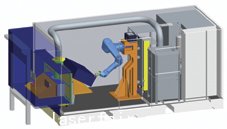 圖3、配備CO2激光係統並集成了機械手的激光加工(切割)單元之係統概念(最大功率5kW)。