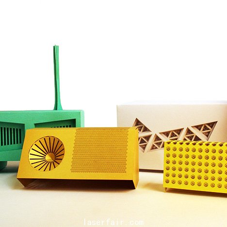 了激光切割紙質收音機,其粘附了RFID標簽。該款產(chan) 品主要針對音樂(le) 家、慈善機構、品牌和設計師,當紙質RFID收音機套在內(nei) 置RFID讀寫(xie) 器的音箱上時,其會(hui) 自動調頻到用戶所選擇的頻道。這個(ge) 係統嚐試為(wei) 互聯網廣播增添一些樂(le) 趣,並給人們(men) 所選擇的藝術家一些互動。發明者希望頻道有望是廉價(jia) 的,且可以成為(wei) 可收藏的產(chan) 品。