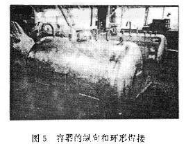 以上述焊接特性為(wei) 基礎,研究了用光纖傳(chuan) 送的容器縱向或環形接合方麵的應用。圖5示出其應用例子。焊接時,采用7kW級YAG激光振蕩器、可與(yu) 大型構件對應的x軸5m、寬2.5m,z軸4m的大型CNC裝置。