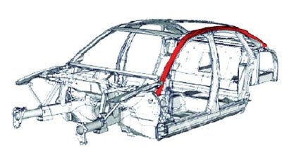 圖3 紅色部分為(wei) 使用激光混合焊接工藝的奧迪A8框架頂側(ce) 梁的焊縫
