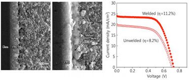 韓國延世(Yonsei)大學材料科係的科學家最近發現,在DSSC的總電阻中,有相當大的比例源自於(yu) 電極間因界麵貼合狀況不佳而衍生的接觸電阻,他們(men) 並證明利用激光焊接(laser welding)界麵可以大幅提高組件的電流大小。
