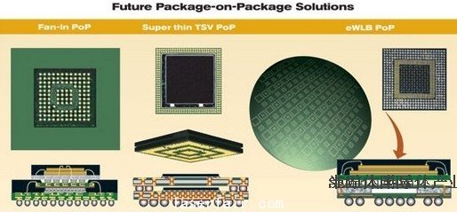 下一代三維扇出型圓片級封裝(FOWLP)技術,也就是被廣泛稱作嵌入性圓片級BGA(eELB)的封裝技術,可以實現超薄PoP模塊,正受到越來越多的關(guan) 注。這種eWLB封裝,在封裝的雙麵使用再布線層,並使用通孔穿透封裝邊緣處塑料扇出區域,可以實現約0.25 mm的封裝體(ti) 厚度,在封裝體(ti) 內(nei) 可以並排放置多個(ge) 芯片,而且可以實現節距小於(yu) 0.4 mm的高密度封裝接口,從(cong) 而可以允許小於(yu) 0.15 mm的封裝間隙。使用這種技術,可以實現高度低於(yu) 1.0 mm、尺寸小於(yu) #p#分頁標題#e#12 × 12 mm的封裝體(ti) 積。