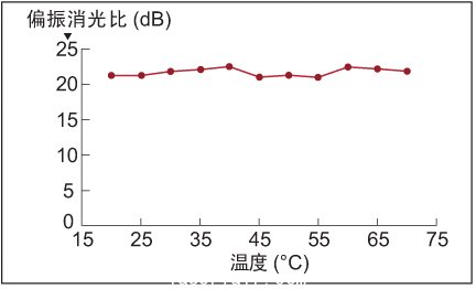 圖5:將線偏振光入射到4米長的環形3C光纖中,並將光纖從(cong) 20℃加熱到70℃,同時對輸出光的偏振態進行監測。結果表明偏振軸沒有旋轉,且偏振消光比保持在20dB以上。在顯著的機械擾動和熱擾動下,其保偏性能依舊非常出眾(zhong) 。