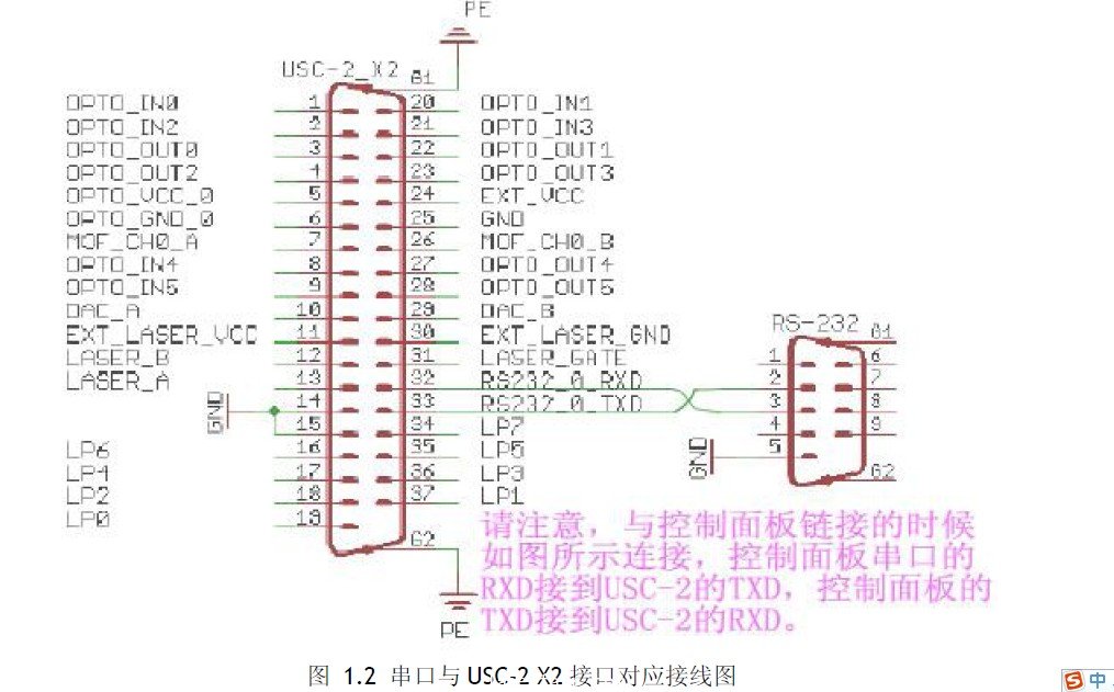 注意:控製麵板的串口RXD 應該與(yu) USC-2 的TXD 相連,控製麵板的TXD 應該與(yu) USC-2 的