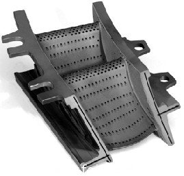 圖2 渦輪機的一個(ge) 定子葉片(西門子發電機), 表麵等離子濺射的熱隔離塗層材料YSZ (氧化鋯)