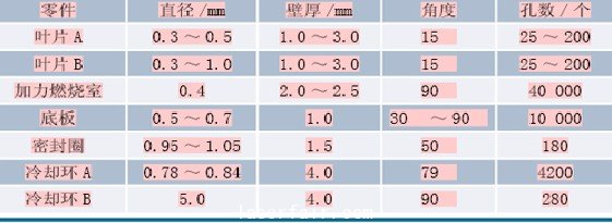 航空燃氣渦輪上的葉片、噴管葉片以及燃燒室等部件在工作狀態時需要被冷卻,因此人們(men) 在這些部件的表麵打上數以千計的孔,用來保證部件表麵被一層薄薄的冷卻空氣覆蓋。這層冷卻空氣不僅(jin) 能夠延長零件的使用壽命,還可以提高引擎的工作性能。一個(ge) 典型的較先進的引擎表麵會(hui) 有10萬(wan) 個(ge) 這樣的孔,隨著打孔技術的發展,目前業(ye) 界通常采用高峰值功率脈衝(chong) Nd-YAG激光器來加工,且套孔(trepanning)和脈衝(chong) 鑽孔(percussion)技術已經得到了成功的應用。