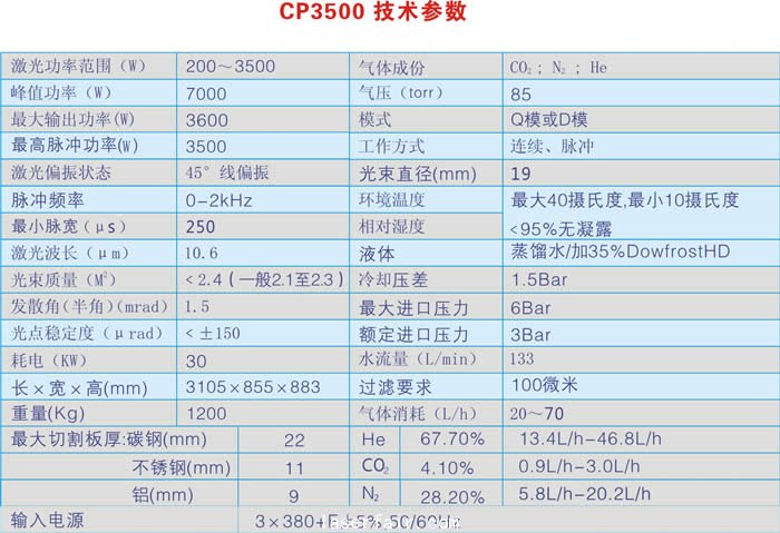 CP3500 CP係列激光器是由美國北美普瑞瑪公司在上一代激光器產(chan) 品的基礎上進行改進後,生產(chan) 出來的最新一代工業(ye) 用的直流激勵軸快流CO2激光器, 其功率高3500W。CP3500的高...
