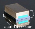 mGreen綠光模組是一個(ge) 單一的無需調節的組件,其內(nei) 部結構為(wei) Nd:YVO4和MgO:PPLN晶體(ti) ,其間有一個(ge) 空氣的縫隙,並封裝在同一襯底之上。因此,Nd:YVO4和MgO:PPLN之間無需調整,這就意味著采用該技術能夠極大地簡化激光器的封裝,同時也能大幅度降低成本。為(wei) 了起到保護和散熱的作用,在晶體(ti) 上麵,還蓋有一個(ge) 金屬蓋。現在,該公司已經開始批量生產(chan) 該綠光模組。本產(chan) 品采用平平腔設計,縮短了腔體(ti) 的總長度,長寬高分別是7mmx4.5mmx2mm。mGreen模組采用的是腔內(nei) 倍頻技術,所以隻需要再增加一個(ge) 808nm半導體(ti) 激光器就可以組成一個(ge) 微型綠光激光器。