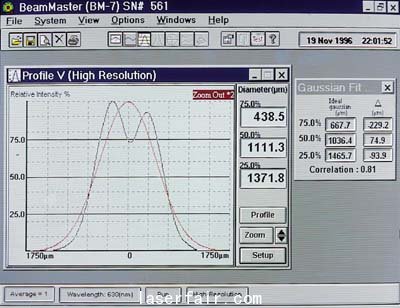 BeamMaster係統可以測量小的光束,甚或是聚焦以後的光束,最小可測量的光束直徑是3μm,分辨率
