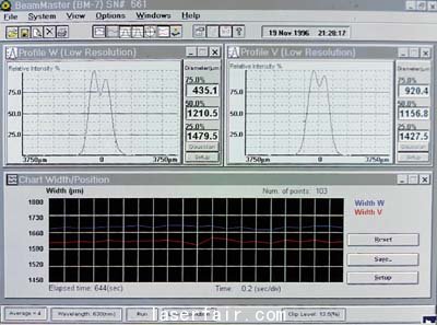 光斑尺寸,質心位置,相對功率連續地顯示在模擬,數字和帶狀記錄紙的計算機屏幕上,也可以實時生