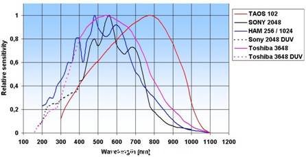 AvaSpec 光譜儀(yi) 有多種探測器,目前在 200-1100nm 波長範圍內(nei) 我們(men) 提供 CCD 、 CMOS 和光電二極管陣列。在下一個(ge) 章節 “ 靈敏度 ” 裏表 4 中將有一個(ge) 很詳細的介紹。在 NIR ( 1000-2300nm )範圍則使用 InGaAs 陣列