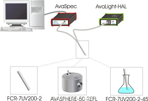 一般來說,固體(ti) 和粘稠液體(ti) 的顏色測量可以通過不同的實驗布局來實現,如通過反射探頭或積分球。所需要的光譜儀(yi) 的波長範圍為(wei) 380-780nm,FWHM光譜分辨率為(wei) 5nm。此外,還需要一個(ge) 連續白光光源和白色反射瓦。對於(yu) 不同的應用,如測量紡織品、紙張、水果、酒類和鳥類羽毛等顏色需要使用不同的探頭。