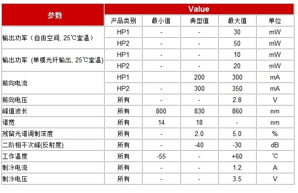 | 非常高的輸出功率 兩(liang) 種輸出功率範圍可選 光譜平坦,極低的殘留FP調製深度 |