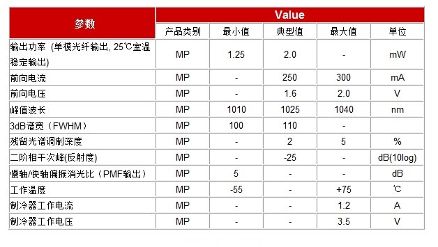 | 中等輸出功率 超寬光譜,線寬可達110nm 光譜平坦,極低的殘留FP調製深度 相幹長度小於(yu) 10um |