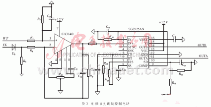 控製電路以SG3525+CA3140為(wei) 核心,采用恒頻脈寬調製控製方式,輸出功率外部(WT)可調,且外部調節信號變化範圍為(wei) 0~5 V,如圖3。
