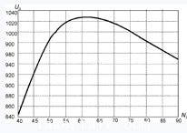 圖5中,橫坐標表示變壓器副邊繞組匝數N2,縱坐標表示輸出電壓U0,在L=100μH,Ui=520V,f=20kHz,N2=60時,輸出電壓U0為(wei) 峰值。