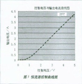 本文實驗確定U1、U2的放大倍數都為(wei) 1,輸出電流0A~3A可調,激光器輸出功率0W~2W可調。引進DSP控製係統,較以往單片機控製有了明顯的改 善。主要表現在:由於(yu) TMS320F2812集成度高,性能好,使該係統具有體(ti) 積小、速度快、處理能力強、可靠性高以及功耗低的優(you) 點;在 TMS320F2812中實現數字濾波方法簡單,提高了開發效率。半導體(ti) 激光器的驅動及保護電路設計完畢後,焊接調試。圖3為(wei) 恒流源在25℃時的控製電壓 與(yu) 輸出電流之間的關(guan) 係。輸出電壓的範圍為(wei) 0V~5V,輸出電流誤差率為(wei) 0.1%。輸出電壓與(yu) 電流成線性關(guan) 係,符合要求。