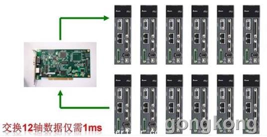 ⑶ 固定的指令周期,在固定的1ms指令周期內(nei) 可交換12軸馬達的數據。如圖6。