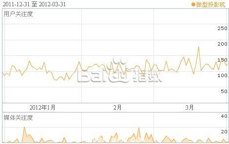 “微型投影儀(yi) ”的百度指數在第一季的波動圖