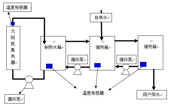 太陽能主要由太陽能轉化係統、儲(chu) 熱係統和恒溫係統組成。利用太陽能輻射將大陽能轉化為(wei) 水的熱能,通過冷水與(yu) 熱水的溫度差來控製循環泵運行進而來控製熱水的循環,達到加熱水的目的。部分功能圖如下所示。