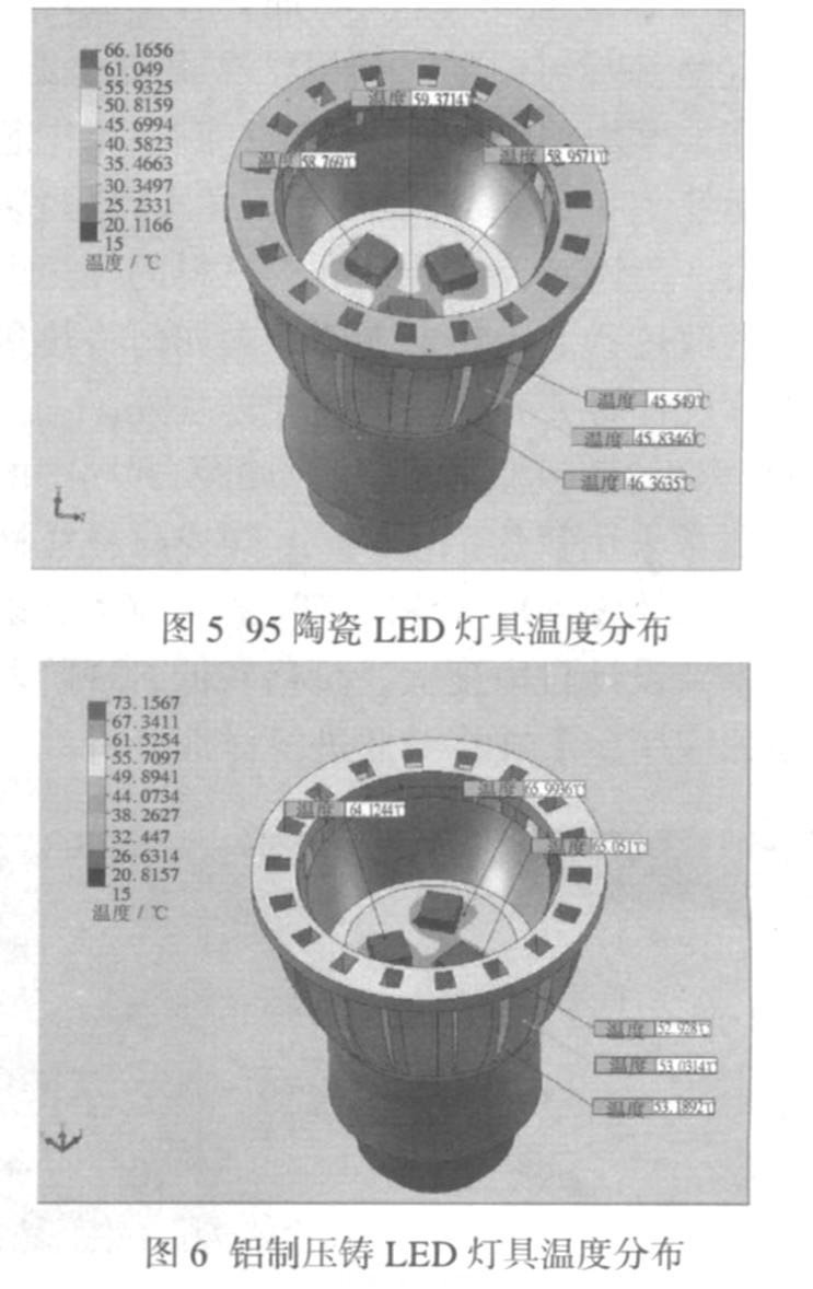 3.2 陶瓷LED燈具和鋁製壓鑄LED燈具的計算機仿真