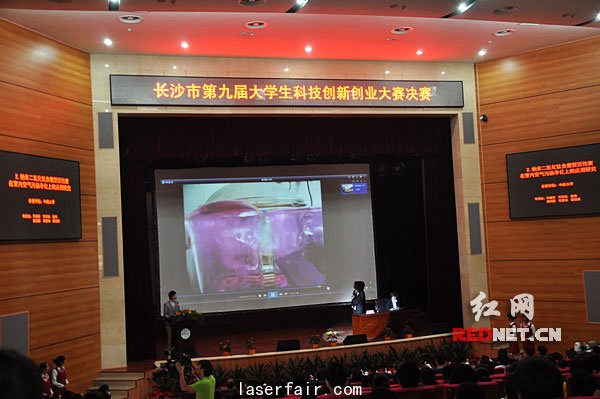 在今日湖南省中醫藥大學的決(jue) 賽現場上,各路學子不斷拋出新鮮有趣又實惠實用的好點子,引得現場觀眾(zhong) 讚歎聲此起彼伏。這些項目中,有用PC和無線技術來控製煙花爆竹的控製器,有能設計成各種裝飾板材的納米二氧化碳負載型活性炭室內(nei) 空氣淨化材料,有能在遊樂(le) 場防止小寶寶走失的“狼群”目標定位跟蹤係統,有在炎熱夏天為(wei) 汽車降溫的外置式太陽能“冷裝置”,大學生們(men) 展現了不俗的發明能力。