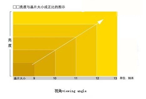 LED顯示屏在法線方向的平均亮度。單位:cd/m2。 在同等點密度下,LED顯示屏的亮度取決(jue) 於(yu) 所采用的LED晶片的材質、封裝形式和尺寸大小,晶片越大,亮度越高;反之,亮度越低。 亮度與(yu) 晶片大小成正比的圖示 。