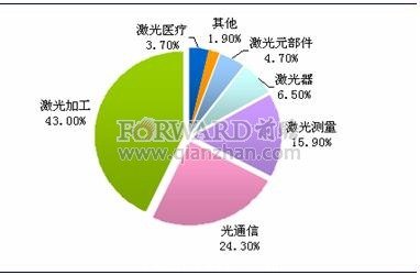 前瞻產(chan) 業(ye) 研究院數據監測中心的分析數據顯示,目前我國激光產(chan) 業(ye) 主要應用於(yu) 激光加工、醫療等行業(ye) ,其中科研開發領域占12%,材料加工領域占32%,通訊領域占12%,信息領域占14%,醫學領域占20%,測量與(yu) 其他領域各占9%和1%。