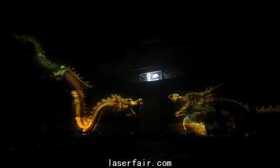 6月26日,發布會(hui) 現場用激光打出的兩(liang) 條巨龍,為(wei) 龍服亮相助興(xing) 。當日,倫(lun) 敦奧運會(hui) 中國體(ti) 育代表團領獎服冠軍(jun) 龍服在北京居庸關(guan) 長城正式亮相。