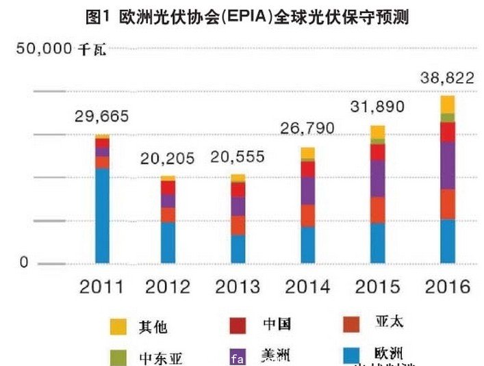 從(cong) 2012年全球光伏市場需求來看,目前絕大多數機構的預測是保守的。由於(yu) 歐洲債(zhai) 務危機還在發酵,新興(xing) 的美國市場受到美國商務部裁決(jue) 的影響,增長的勢頭可能不如預期。歐洲光伏協會(hui) (EPIA)的保守估計2012年全球光伏安裝量大約為(wei) 20GW, 和2011年相比下降約32%(圖1)。市場也許會(hui) 重演一些奇跡(如以前發生在西班牙、意大利的奇跡),但至少到目前為(wei) 止,預示奇跡的“靈光”還沒有出現在地平線上。中國和印度也許是下一個(ge) 奇跡發生的地方,但中國市場即使今年突破性地達到5-6GW的安裝規模也無法完全抵消歐洲市場的衰退對中國廠商帶來的衝(chong) 擊。有些機構看好印度,認為(wei) 那裏的安裝會(hui) 突破7GW。印度2011年大約安裝了0.6GW,今年安裝7GW等於(yu) 是“大躍進”。不過我看不出在印度人的血液和它們(men) 的官僚經濟體(ti) 係中有那種中國式“大躍進”的“衝(chong) 動”基因。