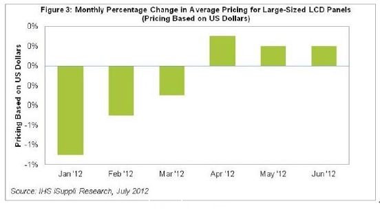 據IHS iSuppli公司的液晶價(jia) 格追蹤報告,第二季度眾(zhong) 多積極因素幫助驅動大尺寸液晶麵板價(jia) 格在6月微漲。大尺寸液晶麵板用於(yu) 電視、監視器和筆記本電腦之中。