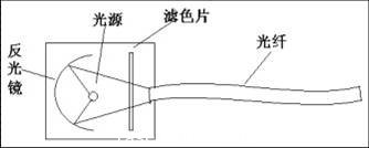 光纖照明係統是由光源、反光鏡、濾色片及光纖組成,如下圖所示: