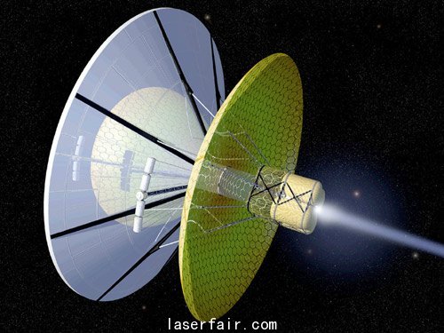 既然太陽不足以推動恒星際太空飛船,於(yu) 是有科學家提出了激光動力推進器技術,利用一束強大的激光將飛船推向太空,其中一項技術就是“激光燒蝕”技術。所謂的“激光燒蝕”就是利用強大的激光來燒蝕飛船尾部的特殊金屬,金屬逐漸蒸發形成蒸汽從(cong) 而提供推進力。另一種相似的技術就是由物理學家和科幻小說家格裏高利-本福德所提出的太陽帆技術,就是在太空飛船上安裝一種太陽帆,太陽帆上塗有一層特殊的油漆。從(cong) 地麵之上發送微波束,微波束“燃燒”特殊油漆中的分子從(cong) 而產(chan) 生推進力。這種技術或許將使得行星際間旅行更快。