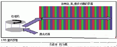 激光熒光掃描顯示係統LPD,也叫做激光陰極射線管LCRT(LaserCathodeRayTube),基本原理是用半導體(ti) 激光器代替陰極射線顯像管的熒光屏來實現的一種新型顯示器件。形式上,這種顯示方式與(yu) LSD類似:主要技術特點都是激光光束持續掃描屏幕。卻別是,LSD采用三原色直接掃描;LPD則采用藍色或者更高頻率的激光光速掃描擁有紅綠藍等多種原色熒光粉的屏幕。在美國,采用LPD(LaserPhosphorDisplay,激光熒光顯示)技術的顯示產(chan) 品已經被安裝到了紐約的鷹牌服裝店裏。LPD已經在戶外展示領域嶄露頭角。