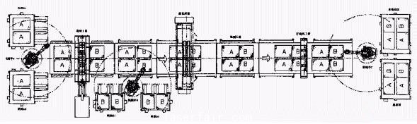 4)在遇到緊急任務的情況下,加工島區可進行局部調整或並行執行工作流程;但必須保證單個(ge) 加工島區的生產(chan) 節拍與(yu) 整個(ge) 生產(chan) 線的生產(chan) 規劃相匹配。最終的實際生產(chan) 線布局如圖4所示。