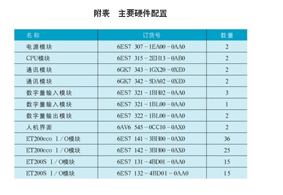數字i/o點多而且比較分散,對電氣故障安全性能要求高是汽車生產(chan) 行業(ye) 的特點,針對具體(ti) 的工藝控製要求,我們(men) 提出了一套低成本、結構緊湊、配置靈活、高安全性能的控製係統。經過認真調研和周密思考,最終選擇西門子s7-300plc作為(wei) 控製係統。本係統選用cpu315-2dp作主控製器,總線采用profibus通訊。現場操作台控製采用et200s擴展。現場各個(ge) 工位的傳(chuan) 感器信號和電磁閥控製采用分布式i/o et200eco模塊。傳(chuan) 送電機控製部分采用了simens的micromaster 440變頻器,plc通過總線通訊控製電機的運行速度及運轉方向。還有兩(liang) 套西門子的人機界麵,采用的是mp270b。它們(men) 與(yu) plc都是通過profibus進行通訊的。最終選定西門子的主要硬件配置如附表所示。