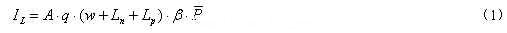 式中:A為(wei) 芯片的PN結麵積,q是電子電量,w是PN結的勢壘區寬度,Ln、Lp 分別為(wei) 電子、空穴的擴散長度,β是量子產(chan) 額(即每吸收一個(ge) 光子產(chan) 生的電子-空穴對數), P是照射到PN結上的平均光強度(即單位時間內(nei) 單位麵積被半導體(ti) 材料吸收的光子數)。它們(men) 分別為(wei) :
