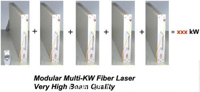 5.光學模塊:光纖激光為(wei) 模塊化設計,每個(ge) 模塊可產(chan) 生幾百瓦甚至上千瓦激光。
