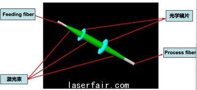 2.準直與(yu) 聚焦係統:在外殼內(nei) ,同中心光軸地置有發射可見光束的半導體(ti) 激光二極管和聚焦透鏡。聚焦透鏡將可見光束聚焦耦合進入準直光纖內(nei) ,由活動連接的輸出耦合頭耦合進入激光工作光纖內(nei) ,從(cong) 激光工作光纖輸出端觀察激光工作光纖與(yu) 準直光纖的相對位置並調整兩(liang) 者準直位置後,去掉準直光纖,接上泵浦源的泵浦光輸出光纖。