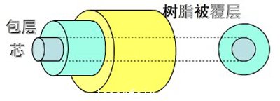 光纖=中心部分(芯Core)+同心圓狀包裹層(包層Clad)+塗覆層