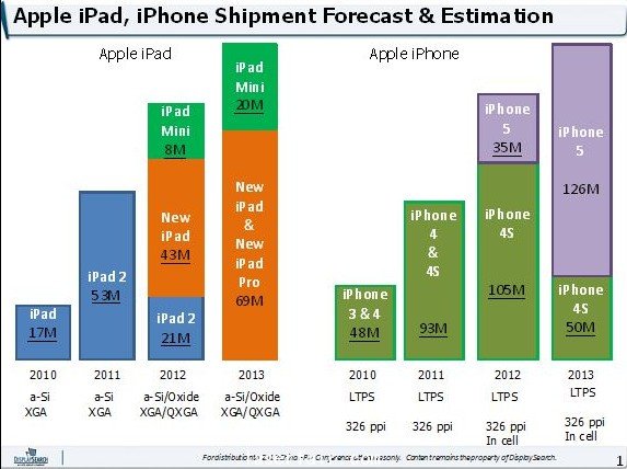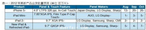 液晶麵板供應鏈(麵板廠、零件供貨商、外包廠)七月初起已經為(wei) 蘋果產(chan) 品動起來,而這股氣勢將會(hui) 延續整個(ge) 2012下半年。蘋果即將發表三項新產(chan) 品:iphoness 5,ipads Mini,以及新一代new ipads。這些行動裝置將配備高分辨率、薄型以及輕量的規格,耗電量也會(hui) 進一步減少。可以肯定的是,這些需求將會(hui) 使得液晶麵板供應鏈的廠商非常的忙碌。