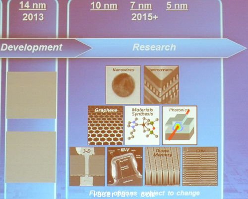 英特爾Ivy Bridge和Haswell兩(liang) 種芯片都將采用22納米製造工藝生產(chan) ,在此之後,英特爾將轉向14納米製造工藝,並預計將在2013年晚些時候或2014年初開始用這種技術製造芯片。周三,在英特爾開發者論壇上,該公司高管透露他們(men) 還掌握了製造10納米芯片的技術。