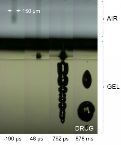 在豚鼠的皮膚治療顯示,這種藥物負載噴流可以注射皮膚之下幾毫米,並對皮膚組織沒有損害。由於(yu) 藥物噴流細小並且快速注入,不會(hui) 出現任何疼痛感。育亨說:“我們(men) 的目標是表皮層,它定位接近於(yu) 皮膚表麵,深度僅(jin) 為(wei) 500微米。”這一皮膚區域並沒有神經末梢,因此該方法將完全沒有疼痛。