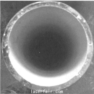 用本試驗所確定的最優(you) 塗料A4B3C4進行油管內(nei) 壁激光強化處理,適當調節塗料的黏度,並用自製的內(nei) 壁噴塗機進行噴塗,噴塗效果如圖4所示,表麵平整,成型良好。噴塗後,用DL-HL-T5000CO2激光器及其導光係統對油管內(nei) 壁進行掃描,采用圓形光斑,15mm離焦量,掃描後取樣分析,功率參數如表3所示。