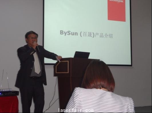 百超公司華南區總經理趙宏慶先生介紹了公司概況、客戶發展、產(chan) 品係列等。據他透露,百超天津工廠將於(yu) 11月正式投產(chan) ,未來產(chan) 能將達500台/年。百超產(chan) 品代理商、益宏五金機電有限公司袁青先生針對激光切割機BySun3015作了詳細的介紹。