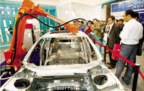 去年光博會(hui) 上,華工科技展出的汽車白車身激光自動焊接成套設備。